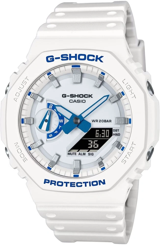 Casio GA-2100HDS-7A1DR, G-SHOCK’un ikonik sekizgen “CasiOak” tasarımını yarı şeffaf detaylar ve ferah beyaz tonlarla buluşturan unisex kol saatidir. Transparan efektli tasarımı sayesinde klasik modellerden ayrışarak daha modern ve dikkat çekici bir stil sunar.