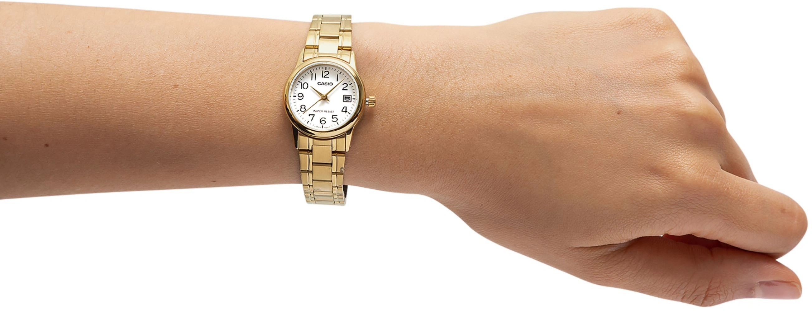 Casio LTP-V002G-7B2UDF modeli, şık ve zarif tasarımıyla dikkat çeken bir kadın kol saati seçeneğidir.