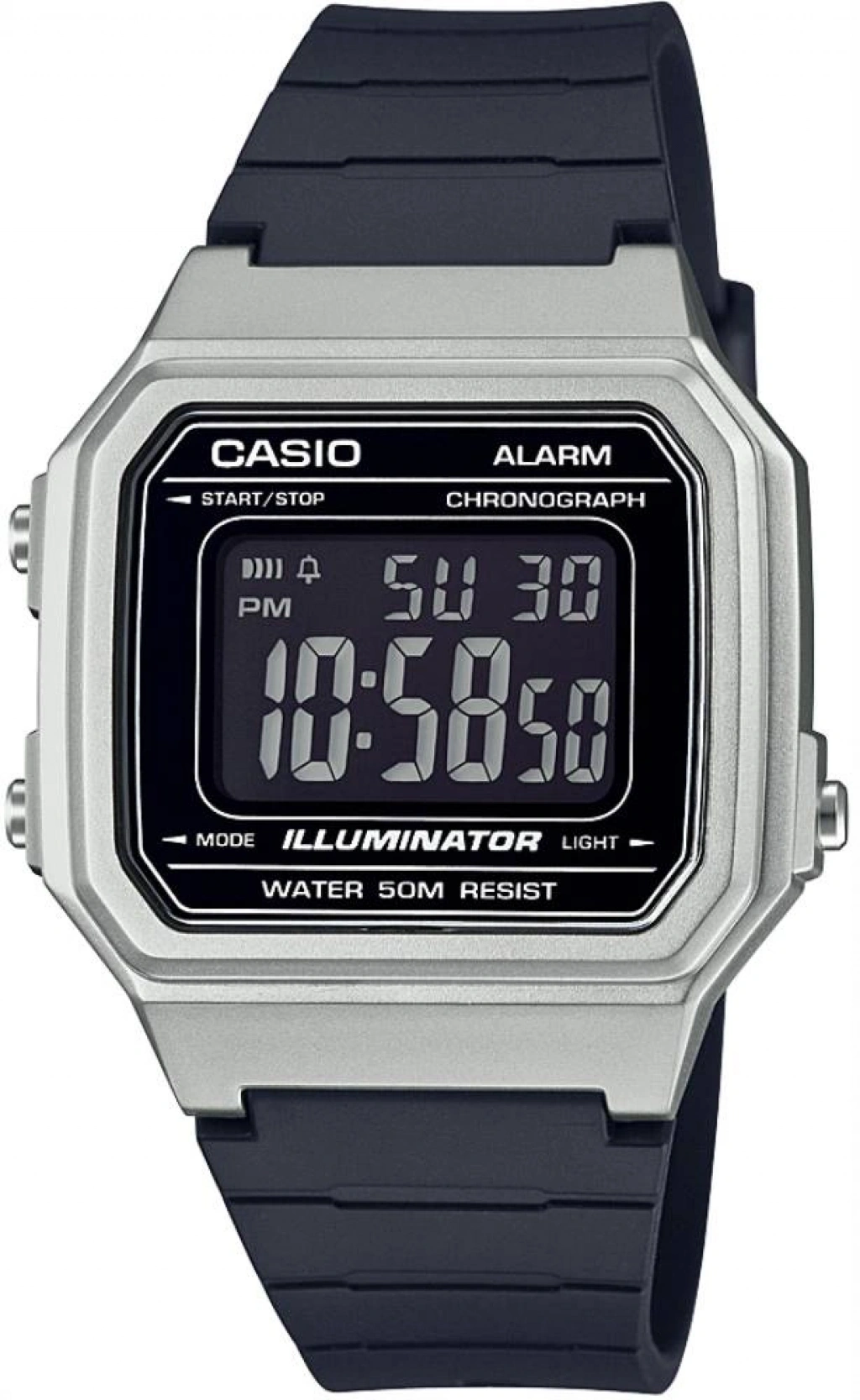 LED Işık, 1 Saatlik Kronometre, Alarm, 7 Yıl Pil Ömrü, Otomatik Takvim, 12/24 Saat Formatı, 50 Metre Su Geçirmezlik, 0, Silikon Kayış, Saatin Boyutları : 43,1 X 41,2 X 10,5mm