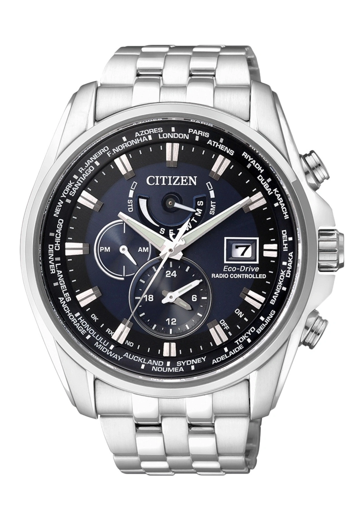 Citizen Eco-Drive AT9030-55L, ileri teknoloji Eco-Drive mekanizması ile ışıkla şarj edilen, pil değişimine ihtiyaç bırakmayan üstün özellikli bir erkek kol saatidir. Eco-Drive sistemi sayesinde hem doğal hem yapay ışığı enerjiye dönüştürerek saatin her koşulda kesintisiz çalışmasını sağlar; bu da günlük kullanımda büyük bir pratiklik ve sürdürülebilir performans sunar.