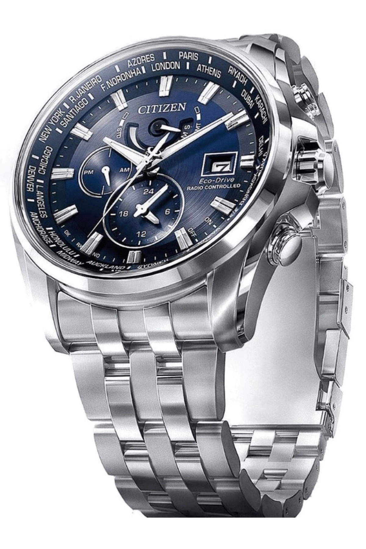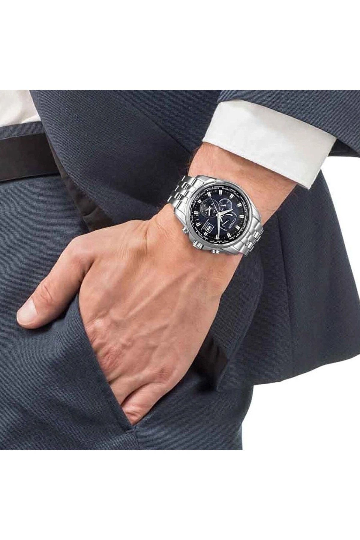 Bu model, dünya saatleri, kronometre, takvim ve diğer fonksiyonel özellikleri bir arada sunarak hem şehirli hem seyahat eden kullanıcılar için çok yönlü bir çözüm oluşturur. Paslanmaz çelik kasası, saatin dayanıklılığını güçlendirirken bilekte dengeli ve premium bir duruş sağlar. Mavi kadranı, detaylı indeksleri ve net akrep-yelkovan yapısı ile zamanı her koşulda kolay ve hızlı şekilde takip etmeye imkân tanır. Citizen Eco-Drive AT9030-55L, modern ama zamansız tasarımıyla ofis stilinden günlük kombinlere kadar geniş bir kullanım alanında stilinizi tamamlayan etkileyici bir aksesuardır. Eco-Drive teknolojisi ve fonksiyonel zenginliği ile bu saat uzun yıllar güvenilir performans ve estetik bir deneyim arayan kullanıcılar için ideal bir tercih sunar.