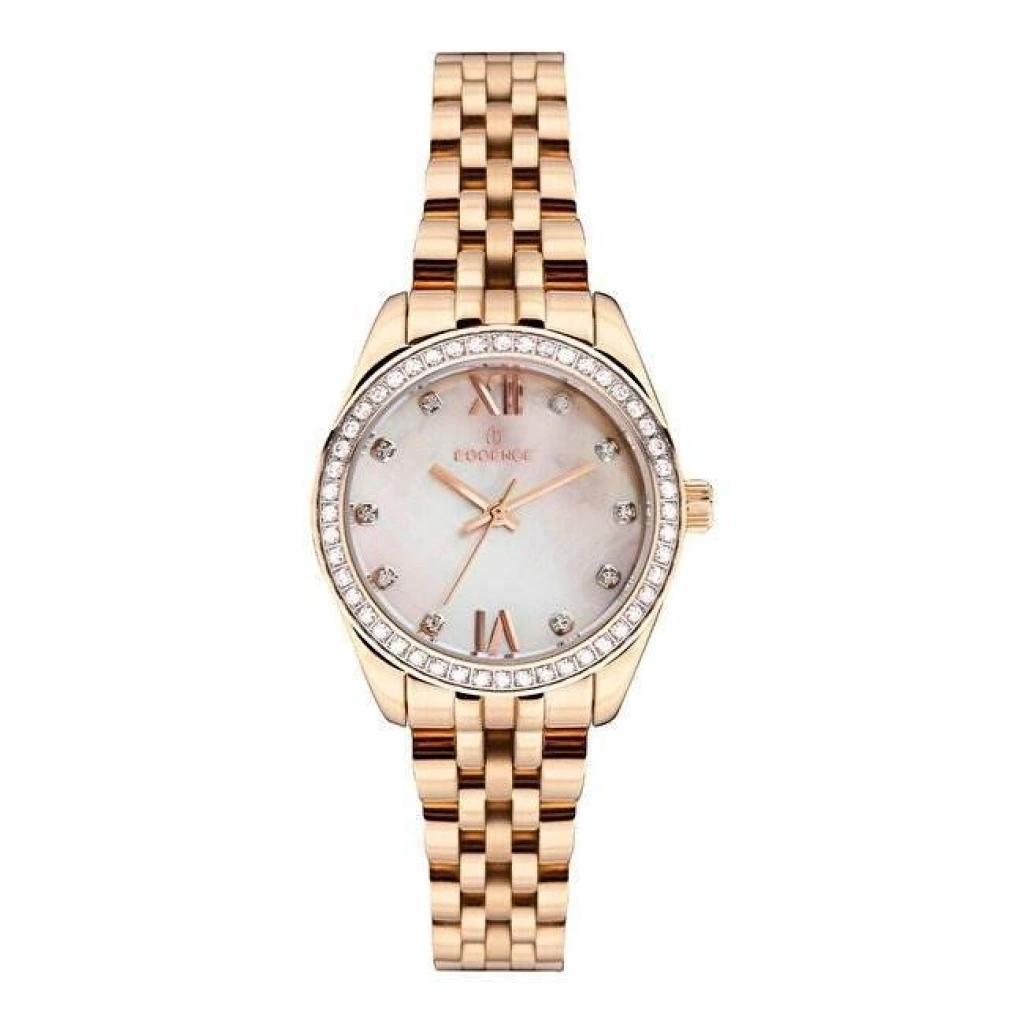 Essence ES6661FE.420 modeli, rose-gold tonlarında çelik kasa ve bileziği ile kadın bileğinde şıklığın zarif bir ifade biçimi olarak öne çıkar. Yaklaşık 32 mm çapa sahip yuvarlak kasası, hem küçük hem de orta bilekler için dengeli bir oturuş sunar. Beyaz-sedef tonlarındaki kadran ve rose-gold detaylı indeksleri ile gündüzden geceye sorunsuz uyum sağlar. Quartz mekanizması sayesinde dakikliğini korurken, 5 ATM su geçirmezlik değeri yağmur ya da el yıkama gibi günlük durumlarda rahat kullanım sunar. Çelik bilezik-kasa birleşimiyle sağlam bir yapı sunarken, rose-gold kaplama renk seçimi saatin hem aksesuar hem de saat olarak seçilmesini kolaylaştırır
